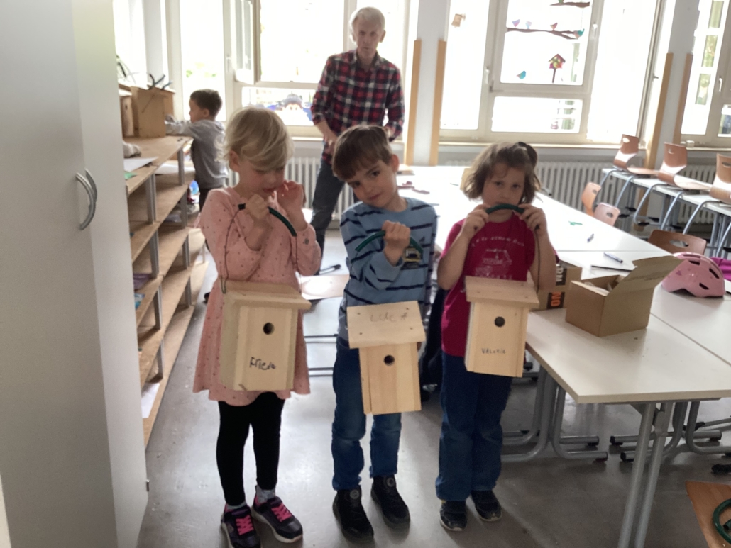 Im Winter ist es für Vögel oft gar nicht so leicht, unter der Schnee- oder Frostschicht genug Nahrung zu finden. Durch unsere Futterstellen helfen wir ihnen, die kalte Jahreszeit gut zu überstehen. Gleichzeitig können wir aus den Klassenzimmern beobachten, welche Vögel uns im Garten besuchen kommen.